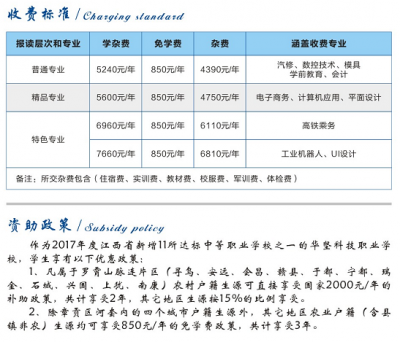 简介: 2020年收费标准: 中专杂费 普通专业:850元减免后,4390元/年(汽车维修与应用、模具、数控技术、学前教育、会计) 精品专业:850元减免后,4750元/年(电子商务、计算机应用、平...