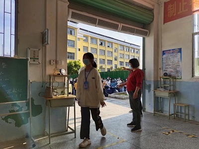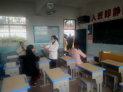 上课途中,一学生连续咳嗽,任课教师停止上课,并询问学生有哪些不舒服的地方。学生体温异常,教师停止上课,引导该生到教室门外。确认学生发热后,任课老师向校防疫小组报告,负责人把学生带到隔离室并进行测温登记。健康观察室工作人员再次对学生复测和询问身体状况,确认发热后,马上报告疫情管理员,疫情管理员接电话后马上报告疫情总指挥,总指挥马上广播通知启动应急预案。工作人员按疫情防控要求联系县人民医院,并用救护车把学生转送至人民医院。我校消杀组立即对校门口及临时观察点进行消杀。