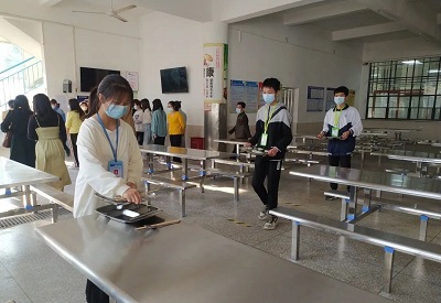 演练模拟了学生进校、餐厅就餐、体温检测、课上突发情况处置等多个实战场景下的应急处置。
