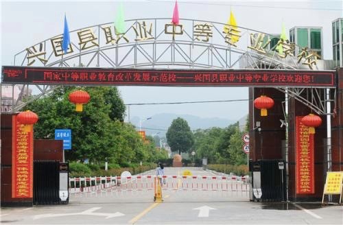 自创校以来就努力把学校办成一所自然与艺术完美结合,花园与校园和谐统一的示范校。近年来,学校多方筹措资金大力改善学校办学条件。2009年,学校以创办国家重点职校为契机,积极争取上级资金新建了实训楼,新购了数控和汽车维修设备,创建了数控、汽车、服装等专业实训基地,对学校进行了美化绿化。造型新颖的办公大楼,恢宏气派的教学楼,标准大方的实训大楼,功能齐全的学生公寓,美丽典雅的休闲广场,把校园装扮得多姿多彩,格外诱人。经过全校师生的不懈努力,我校于2010年10月通过了国家级重点中等职业学校的评估。在县委、县政府的大力支持下,投资2300万元校园扩建工程紧锣密鼓建设中,2011年底一所设备更加先进、功能更加完备的国家级重点职校将屹立在兴国大地。