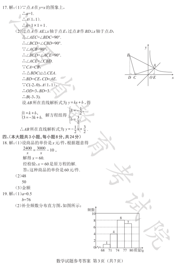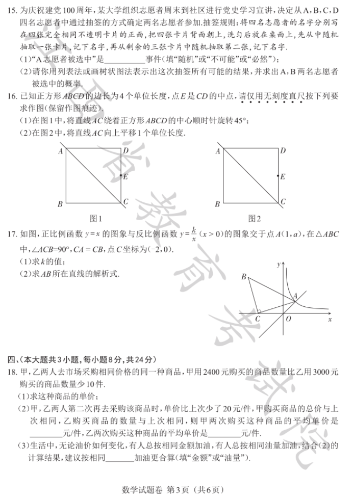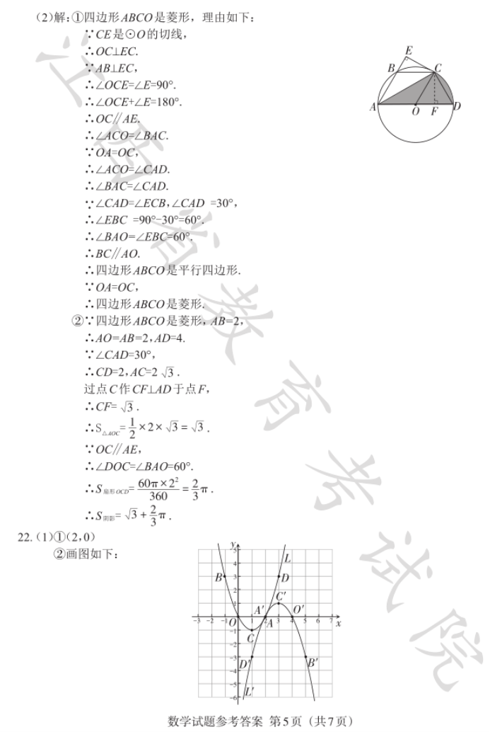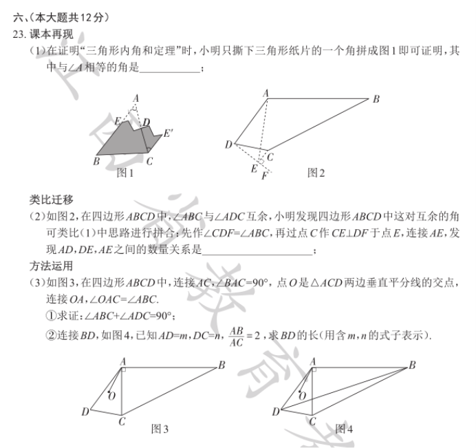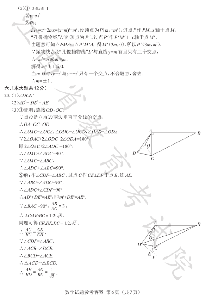 2023年江西省中考数学真题及答案【图片版】