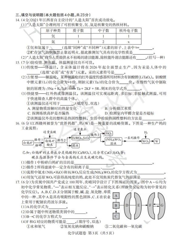 2023年江西省中考化学真题及答案【图片版】