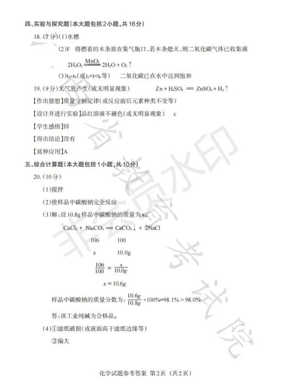 2022年江西中考化学真题及答案解